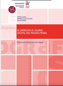 El derecho al olvido digital del pasado penal (Inmaculada Jiménez-Castellanos Ballester. Tirant Lo Blanch). Desde la perspectiva del Derecho Constitucional, esta obra aborda un riguroso estudio sobre el derecho fundamental a la protección de datos personales y, en especial, el derecho al olvido digital. Entre otras perspectivas, analiza los conflictos entre el derecho al olvido digital del pasado penal y las libertades informativas y el principio de transparencia.