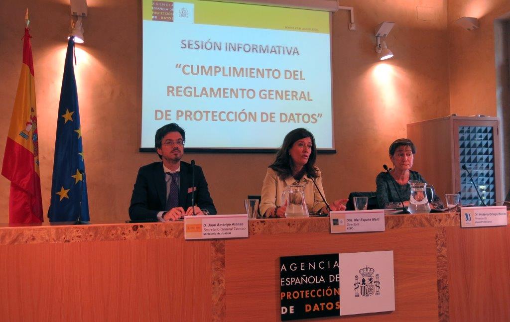 Unión Profesional (UP) y la Agencia Española de Protección de Datos (AEPD) han celebrado esta mañana en la sede de la AEPD una sesión informativa orientada a los Consejos Generales y Colegios de ámbito estatal sobre el cumplimiento del Reglamento General de Protección de Datos (RGPD), que será aplicable el próximo 25 de mayo.
