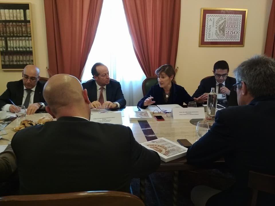 La jornada daba comienzo a las 10,30 horas con la celebración de un encuentro con empresarios, abogados y expertos en Nuevas Tecnologías de Jerez y la provincia, denominado ‘Diálogo de la Abogacía’, en el que la presidenta de la Abogacía, acompañada por el decano de ICAB Jerez, Marcos Camacho, y miembros de su Junta de Gobierno, recogía las inquietudes en torno a la transformación digital, tema central del próximo Congreso Nacional de la Abogacía que tendrá lugar en Valladolid en 2019.