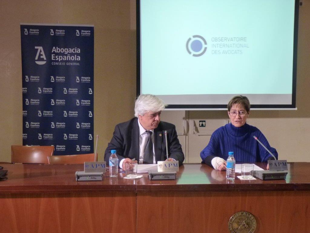 Oriol Rusca, decano del Colegio de la Abogacía de Barcelona y presidente de la Comisión de Relaciones Internacionales de la Abogacía, aseguró que la Abogacía Española –que es miembro del Observatorio Internacional de Abogados en Riesgo- está implicada en la defensa de los abogados que son perseguidos en el ejercicio de su profesión tanto a “nivel de apoyo moral como a nivel material buscando actuaciones más efectivas en favor de estas abogacías” perseguidas.