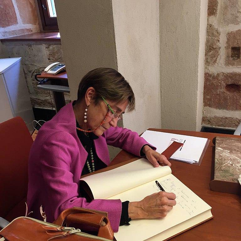 Al concluir el acto, la presidenta firmó en el libro de visitas de la institución colegial.
