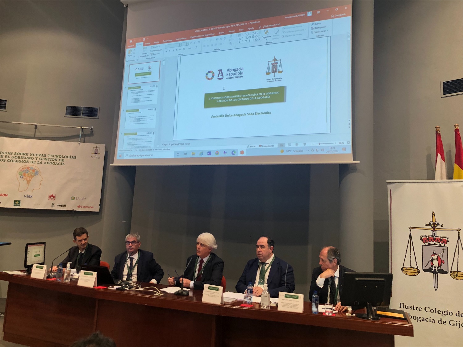 Las V Jornadas sobre nuevas tecnologías en el gobierno y gestión de los Colegios de la Abogacía, organizadas por el Consejo General de la Abogacía Española y el Colegio de la Abogacía de Gijón, se celebran los días 26 y 27 de mayo en Gijón. Durante estos dos días, miembros de los Colegios de la Abogacía de toda España -hay más de 180 inscritos de más de 60 Colegios- comparten sus experiencias sobre la implantación de herramientas y funcionalidades de los servicios tecnológicos del Consejo General la de la Abogacía, como el nuevo SIGA o el expediente electrónico en los Colegios de la Abogacía.