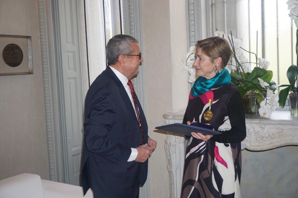 Durante la reunión con el representante de la Abogacía Colombiana, Jairo Céspedes ha impuesto a Victoria Ortega la condecoración de Jurista Emérita de la Abogacía Colombiana, haciendo entrega de la resolución, diploma e imposición de la medalla correspondiente.