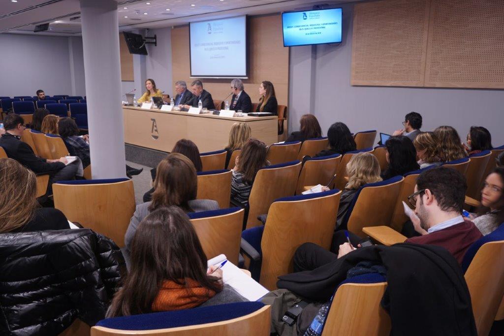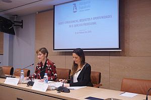 La primera mesa redonda, moderada por María Eugènia Gay, presidenta de la Comisión de Relaciones Internacionales del Consejo General de la Abogacía Española, abordó el acceso al ejercicio de profesiones reguladas en España desde títulos extranjeros, con especial dedicación a la abogacía.