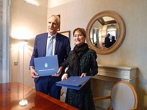 La presidenta del Consejo General de la Abogacía Española, Victoria Ortega, y el presidente de UNICEF Comité Español, Carmelo Angulo Barturen, han firmado hoy un convenio para impulsar la promoción y protección de los derechos de la infancia en España.