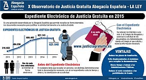 En 2014, fueron 627.741 los expedientes de ciudadanos que utilizaron este servicio, mientras que en 2013 el Expediente Electrónico se utilizó en 565.492 solicitudes de Justicia Gratuita. En cinco años se ha duplicado el uso del Expediente Electrónico de Justicia Gratuita, pasando de 316.922 expedientes en 2011 a 621.658 de 2015.