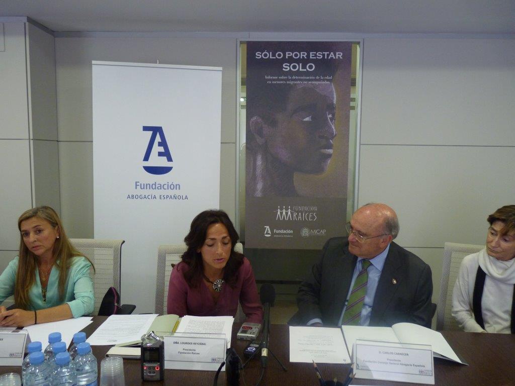 Esta es una de las principales conclusiones que se recogen en Sólo por estar solo. Informe sobre la determinación de la edad en menores migrantes no acompañados, elaborado por la Fundación Raíces en colaboración con la Fundación Abogacía Española, que han presentado esta mañana en Madrid el presidente de la Abogacía, Carlos Carnicer, y la presidenta de la Fundación Raíces, Lourdes Reyzábal.