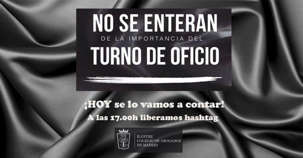 El Colegio de Madrid puso en marcha una campaña en Twitter por el Turno de Oficio que dió comienzo el día 10 a las 17.00 horas cuando se liberó el el hashtag bajo el que se pododía tuitear sobre el contenido de la campaña en el Twitter Oficial del Colegio. Además, acogió el 12 de julio en la Biblioteca una jornada de debate para conmemorar el día de la Justicia Gratuita. Bajo el título “Asistencia Jurídica Gratuita y Turno de Oficio: la calidad de un servicio público”.