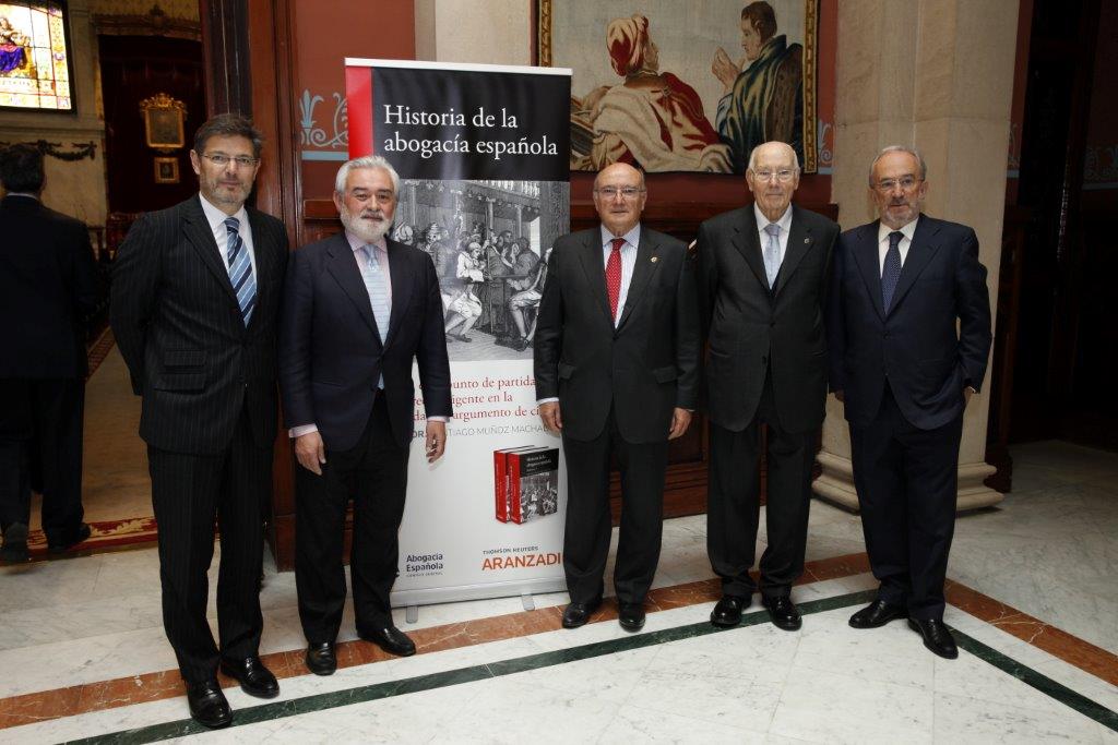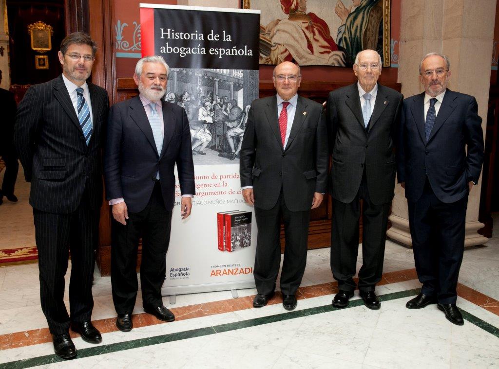 El presidente del Consejo General de la Abogacía Española, Carlos Carnicer, el director de la Real Academia Española (RAE), Darío Villanueva, y el presidente del Consejo Editorial de Aranzadi, Javier Moscoso, presentaron el miércoles 29 de abril,en la sede de la Real Academia Española el libro ‘Historia de la Abogacía Española’. El acto contó con la intervención del ministro de Justicia, Rafael Catalá.