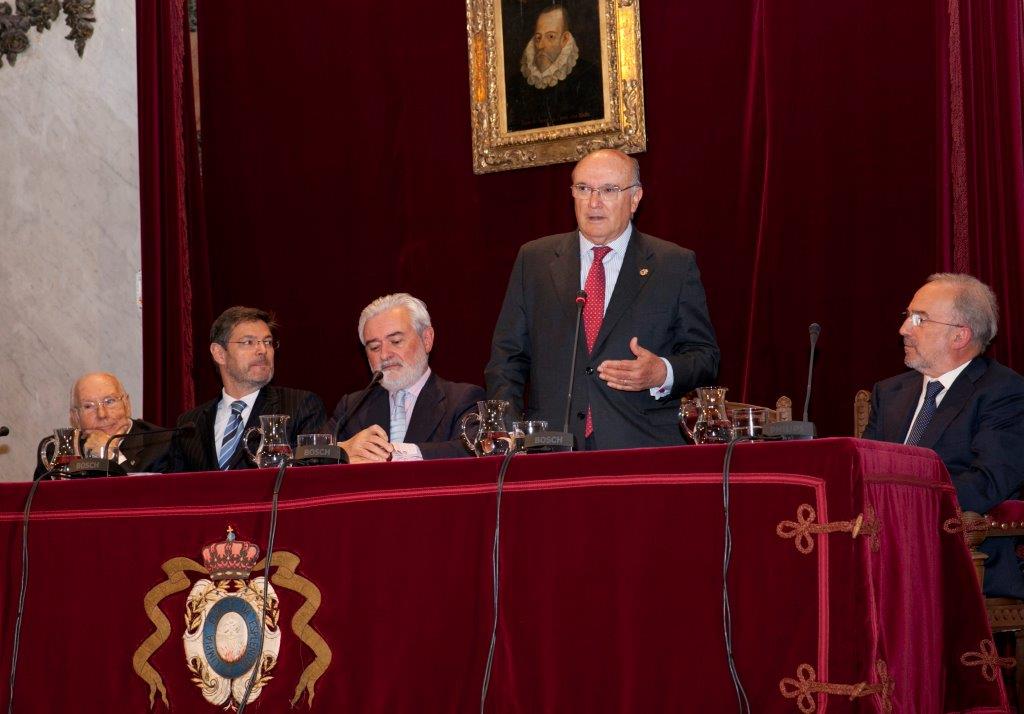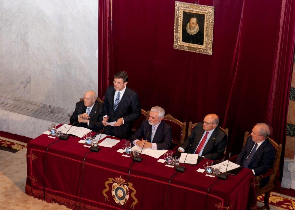 El ministro de Justicia elogió «este verdadero manual de consulta, una auténtica enciclopedia, que abarca más de veinte siglos y nos ofrece una mirada profunda a través de otros ámbitos, de la cultura y la sociedad española, como en los capítulos dedicados al abogado en la literatura y en el cine».