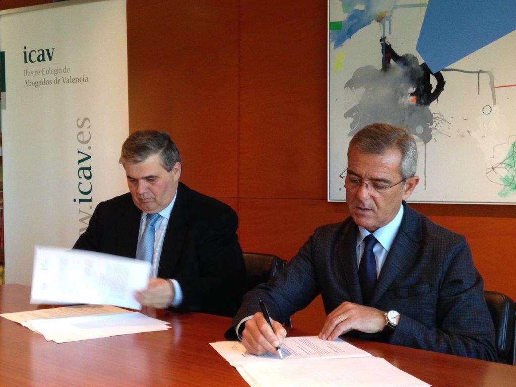 El decano del Colegio de Abogados de Valencia (ICAV), Rafael Bonmatí Llorens y el rector magnífico de la Universidad Internacional de Valencia (VIU), Javier Viciano Pastor, han firmado un acuerdo de colaboración para reforzar la formación de los estudiantes de la VIU, con el objetivo de conseguir profesionales con visión real de los retos y problemáticas que plantea la vida profesional, preparando su incorporación futura al mercado laboral.