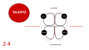 El hemisferio derecho es el que te va a permitir conseguir una mente más abierta, y con una mayor capacidad para entender desde distintas perspectivas, y es el que nos conecta con nosotros mismos y con los demás. El talento en la excelencia va más allá de la mera capacidad de entender y de la habilidad de hacer, no obstante, no dejes tampoco de estimular tu hemisferio izquierdo, el de la razón y lo concreto. El talento que aporta valor necesita de los dos hemisferios, de los cuatro cuadrantes.