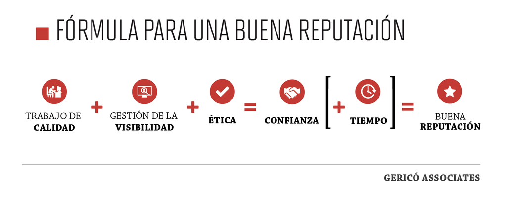 Trabajo de calidad + gestión de la visibilidad + ética= confianza (+tiempo)= buena reputación