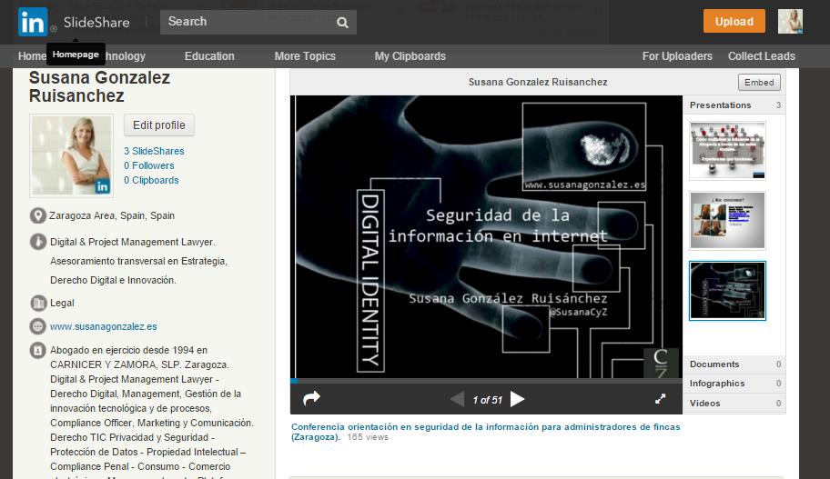 Compartir nuestra presentación corporativa, vídeo o infografía, o bien la preparada para un post, para una formación o ponencia de forma visual, atractiva, rápida y sencilla y, además, mejorar el posicionamiento SEO usando palabras clave en el título, en la descripción de tu Slide, en los tags, etc.