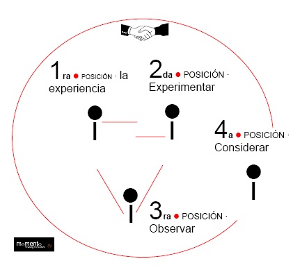 Primera posición: la experiencia a través de nosotros mismos. Lo que vemos, oímos y sentimos, lo vemos, oímos y sentimos a través de nuestra propia experiencia, somos parte de la propia situación.A partir de las cuatro posiciones perceptuales –el yo, la otra persona, el observador y el sistema- , vivir cualquier situación desde la experimentación nos ayudará a comprender mucho mejor la utilidad de esta técnica en cualquier ámbito en el que queramos aplicarla.