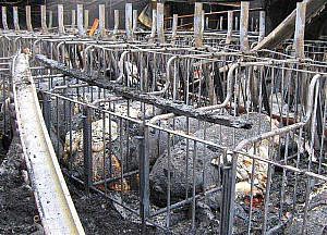Caso similar es otra muy frecuente situación de emergencia en nuestro país, los grandes incendios que devastan nuestros bosques y que irremediablemente llegan en muchos casos a zonas habitadas, residenciales o rurales, donde también llegan a arrasar explotaciones ganaderas, no sin olvidarnos de los miles de animales salvajes que mueren calcinados. Sirva a modo de ejemplo las dramáticas cifras que proporcionó la Sociedad Gallega de Historia Natural sobre el incendio que asoló el año pasado 35.000 hectáreas y en el que se calcula que murieron alrededor de 177.000 conejos, 35.000 erizos, 1.000 comadrejas o 7 millones de lagartijas, entre otros muchos animales (ver noticia en El Faro de Vigo y noticia en Eldiario.es).