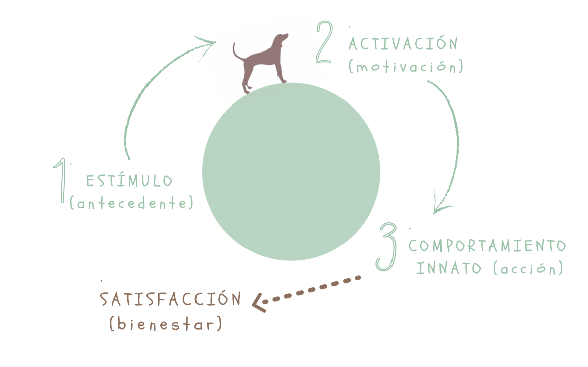 En primer lugar debemos tener presente que hay perros que tienen unas necesidades etológicas muy diferentes a otros perros. Con algunos puede ser suficiente un paseo por la ciudad, pero para otros va a ser totalmente insuficiente, necesitando desarrollar su olfato, y “sacar” su conducta instintiva (y no nos referimos a llevar al perro a cazar). En efecto, cuando un perro no puede canalizar su conducta instintiva, pensemos por ejemplo, de caza, es cuando aparecen los conocidos problemas de comportamiento tales como un perro que se lanza a morder a los ciclistas por ejemplo, un perro que persigue a perros de tamaño más pequeño hasta que los alcanza, un perro que sigue un rastro de un animal y se pierde, un perro que rompe y muerdo mobiliario en casa…. y podríamos seguir con una larga lista. Estos problemas de comportamiento, en la mayoría de los casos vienen derivados a la falta de satisfacción de sus necesidades etológicas.