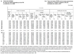 Y para los contratos suscritos con posterioridad al año 2010 el parámetro de comparación es el interés medio publicado en el Boletín Estadístico del Banco de España en cada momento, en el Capítulo 19,4 para las tarjetas de crédito y tarjetas revolving.