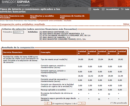 Si acudimos al Banco de España y extraemos una comparativa de las cinco entidades bancarias más importantes de nuestro país, correspondiente al primer trimestre de 2015 (año en el que se dicta la sentencia de 25 de noviembre de 2015), podremos comprobar, en la línea de la sentencia analizada por la Sección 1ª de la Audiencia Provincial de Albacete y confirmada por la Sala 1ª del TS, que el tipo medio aplicado por esas entidades bancarias estaba efectivamente en esa horquilla del 22%, 25%, e incluso el 26%.