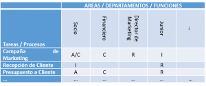 Cuando analizamos en un despacho los procesos de negocio y áreas funcionales, atribuimos responsabilidades y tareas conforme a herramientas como la matriz RACI (que define quién es el responsable, el autorizado, el consultado y el informado) en base a un organigrama formal. Se busca con ello no duplicar tareas, asignar líderes… en definitiva: ser más eficientes.