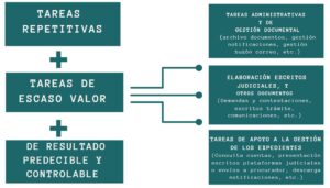 Automatizar tareas o partidas de trabajo propias de este tipo de asuntos, supone que los sistemas informáticos repliquen de forma autónoma la tarea manual que habitualmente realiza el abogado o miembro de su equipo.