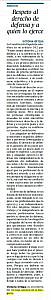 Su encomiable trabajo es el que hace posible que el proceso tenga todas las garantías, que se haga justicia y que la ley castigue con toda su dureza a quien haya cometido este crimen. Porque sin defensa no hay justicia, y sin justicia no hay Estado de Derecho. Defendamos y respetemos, pues, a quien defiende porque nos defiende a todos de la barbarie.