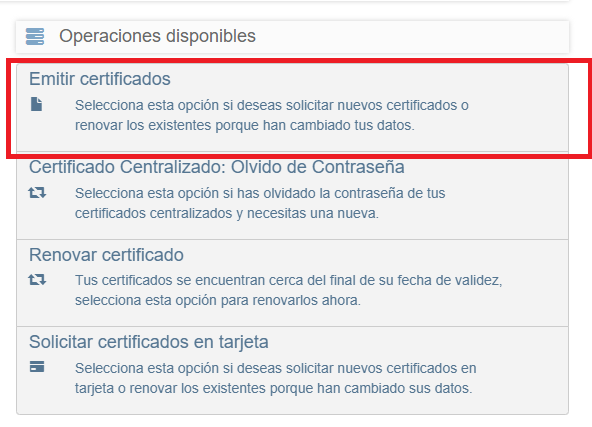 2.-Accede al apartado de «Emitir Certificados» y aceptar contrato de emisión.