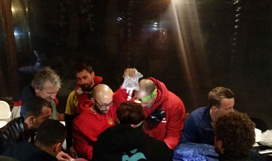 Fueron horas de rastreo sin apenas medios. Casi todos lo dieron por muerto. Menos Marcos. Cuando Aladín vio una luz brillante y oyó a alguien saltar al agua y decirle algo en inglés, pensó que se había ahogado y estaba en el cielo europeo. Una barca lo llevó hasta el muelle donde le esperaban médicos y enfermeros voluntarios en una tienda que algún día fue de un montañero solidario. Le pusieron el suero que llevaban rato calentando con el calor de su pecho porque no habían perdido la esperanza de encontrarlo. Varios pescadores le trasladaron a pulso hasta un restaurante que abrió de madrugada, donde pudo entrar en calor y comer algo caliente hecho por personas generosas que le dieron también ropa seca.
