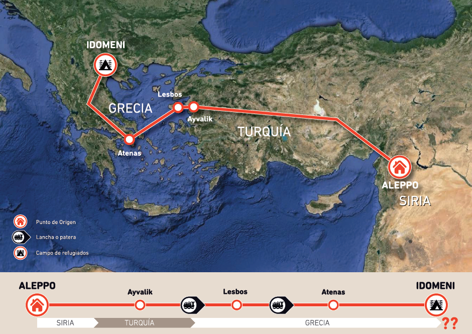 Imán mira al resto de sus hijos que saltan y juegan sobre las vías de tren que rodean las tiendas donde sobreviven desde hace más de dos meses. Khaked tiene 10 años y un tesoro: una concha y una caracola que recogió en la playa de Lesbos. La familia llegó allí tras un viaje en el que los más pequeños no dejaron de llorar. Después cruzaron a Atenas y tras varios días en autobús, lograron llegar a Idomeni. Justo cuando la frontera cerraba y, con ello, las esperanzas de miles de familias como la suya. Pero el viaje empezó mucho antes, cuando las bombas cayeron sobre Aleppo y ya no tuvieron dónde vivir. Por eso los niños dibujan casas: grandes, pequeñas, rodeadas de árboles o de ríos. Casas a las que esperan volver mientras van perdiendo días de infancia entre los más de 50.000 refugiados que aguardan en Grecia a que los Gobiernos europeos respeten su derecho al asilo y puedan tener hogar, educación y un futuro lejos de la violencia.