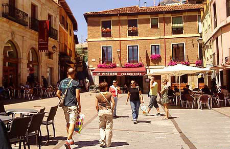 Los meses de verano la Plaza Mayor se convierte en un punto de reunión, los bares sacan sus terrazas a la calle para hacer las delicias de turistas y locales. Hay dos edificios que merecen especial atención, el Antiguo Consistorio (Edificio Mirador) y el edificio del Hotel NH Plaza Mayor.