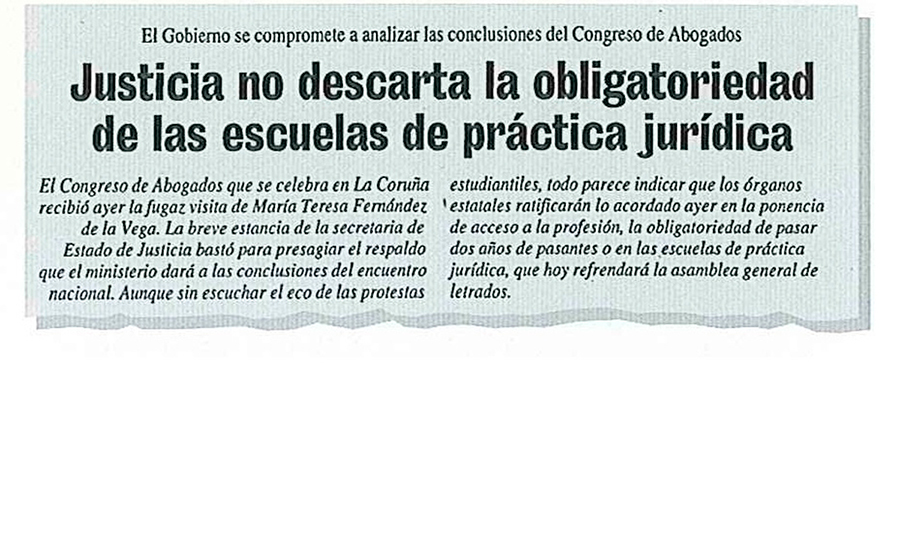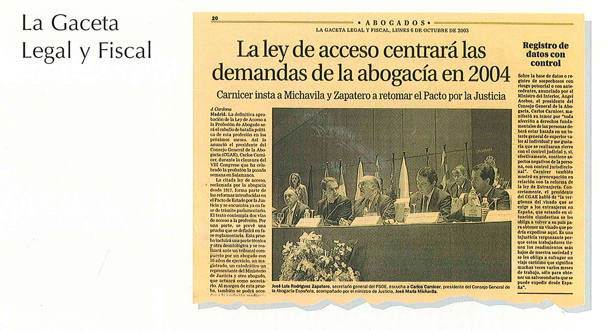 El I Congreso Nacional de la Abogacía tuvo lugar en San Sebastián en 1917, donde los abogados de toda España sentaron las bases de la futura institución que regularía y velaría por la profesión, el Consejo General de la Abogacía Española. Ya entonces se solicitó la regulación del acceso a la profesión, una reivindicación que ha tardado más de 90 años en fructificar con la aprobación de la Ley de Acceso y su entrada en vigor el 1 de noviembre de este año.